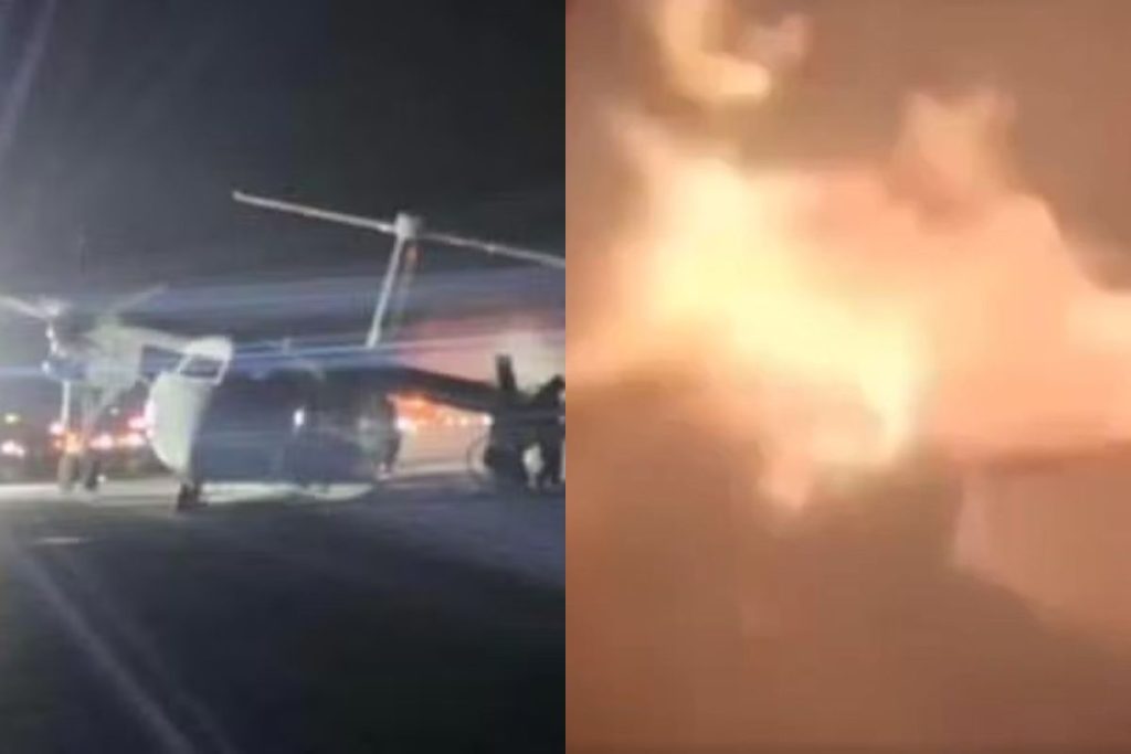 Avião pega fogo após pouso forçado no Canadá