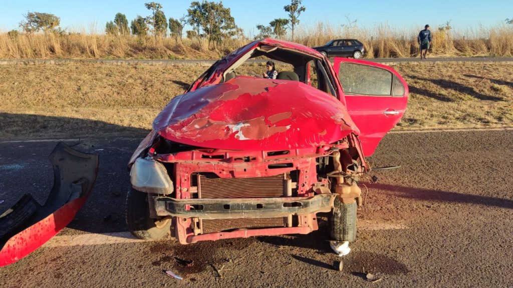 Imagens divulgadas pela PRF mostram um dos veículos severamente danificado após colisão