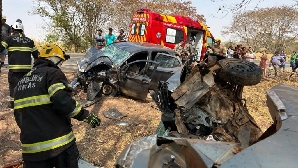 Colisão envolveu um Fiat/Siena e outro veículo, que ficou irreconhecível com a pancada