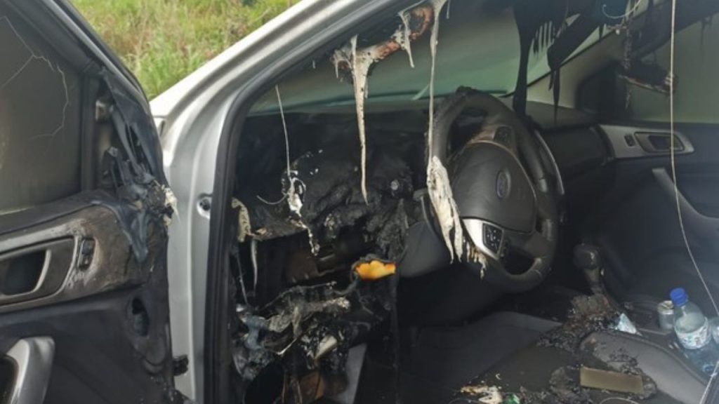 Raio atinge caminhonete em rodovia de Goiás e imagens mostram como ela ficou por dentro