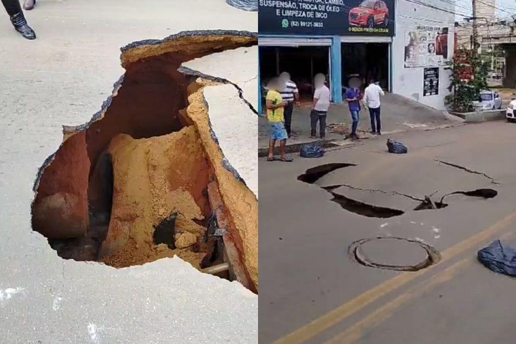 Dois cruzamentos importantes em Anápolis estão totalmente interditados após nova cratera se abrir