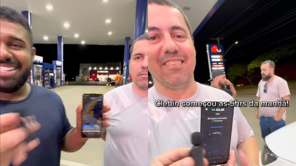 "É Uber, pai, estou com passageiro aqui", grita ele bem alto para avisar
