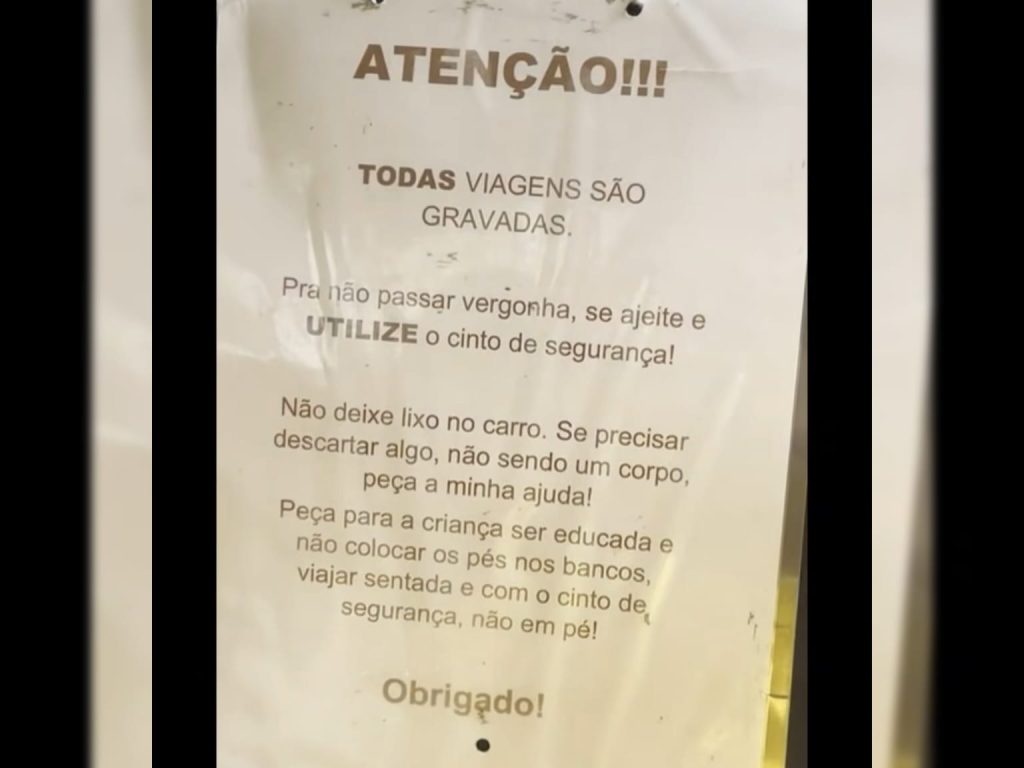 Mensagem fixada no banco do carona do carro de um condutor chamou a atenção e viralizou nas redes sociais